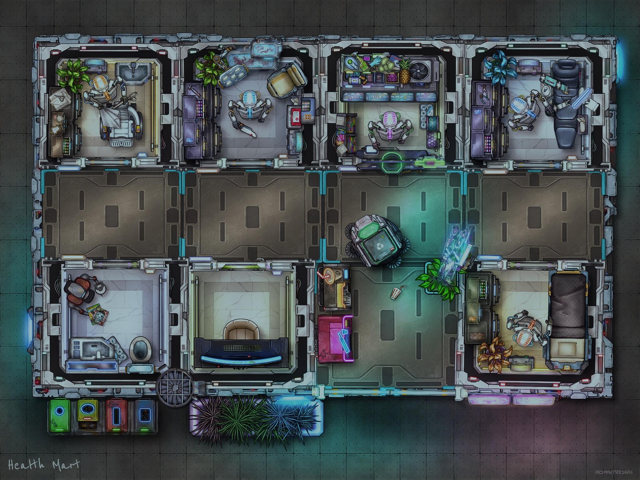Revolutionary, not in the services it provides but in the fact that it is AI owned and operated, the Health Mart offers first class attention to some of your health and beauty regime needs. Minor surgery, limb reattachment or replacement - no problem, visit the Board-Certified Surgeon. Most procedures take mere moments out of your precious time. Sore tooth or just fancy a new smile, the Dentist graduated top of his class and will be able to give you a winning smile in no time at all. Old bones feeling out of joint, new ones not lining up properly, get adjusted at the ChiroBot, or just a deep tissues massage to work out all the knots. And no 'you day' is complete without a haircut or beard trim. with herbal shampoos, oils and conditioners that can work wonders on the worst of bed heads, a visit to the BarberBot is a must. He's a genius with those scissors.