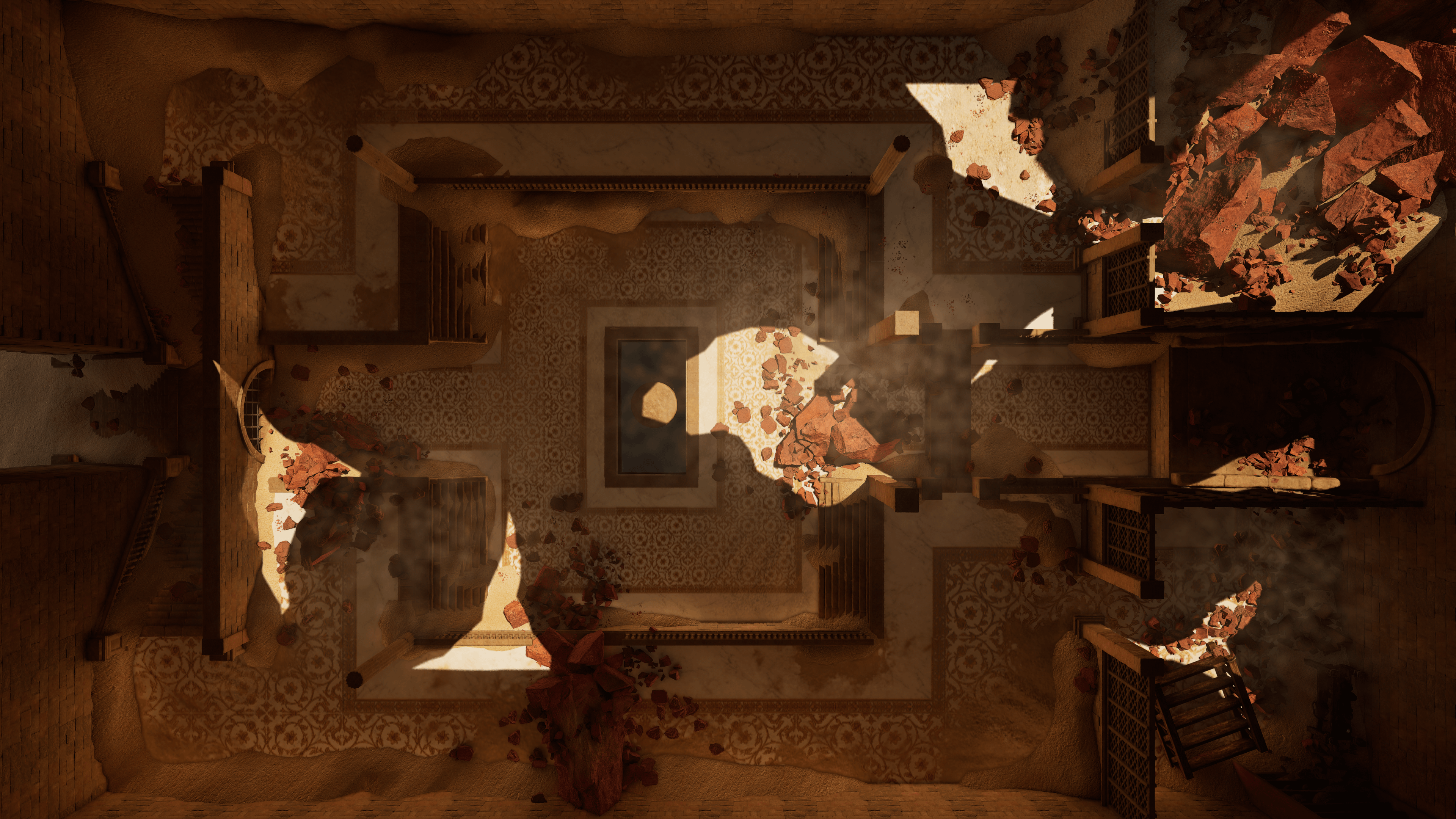 * **The Twist (Full Version):** For those using the dynamic version, there’s a **second phase**. Once the players trigger the mechanism, the "White Fount" lives up to its name—water floods the halls, rushes out into the canyon, and turns that beautiful sand into a muddy, difficult-terrain nightmare while the temple starts collapsing!