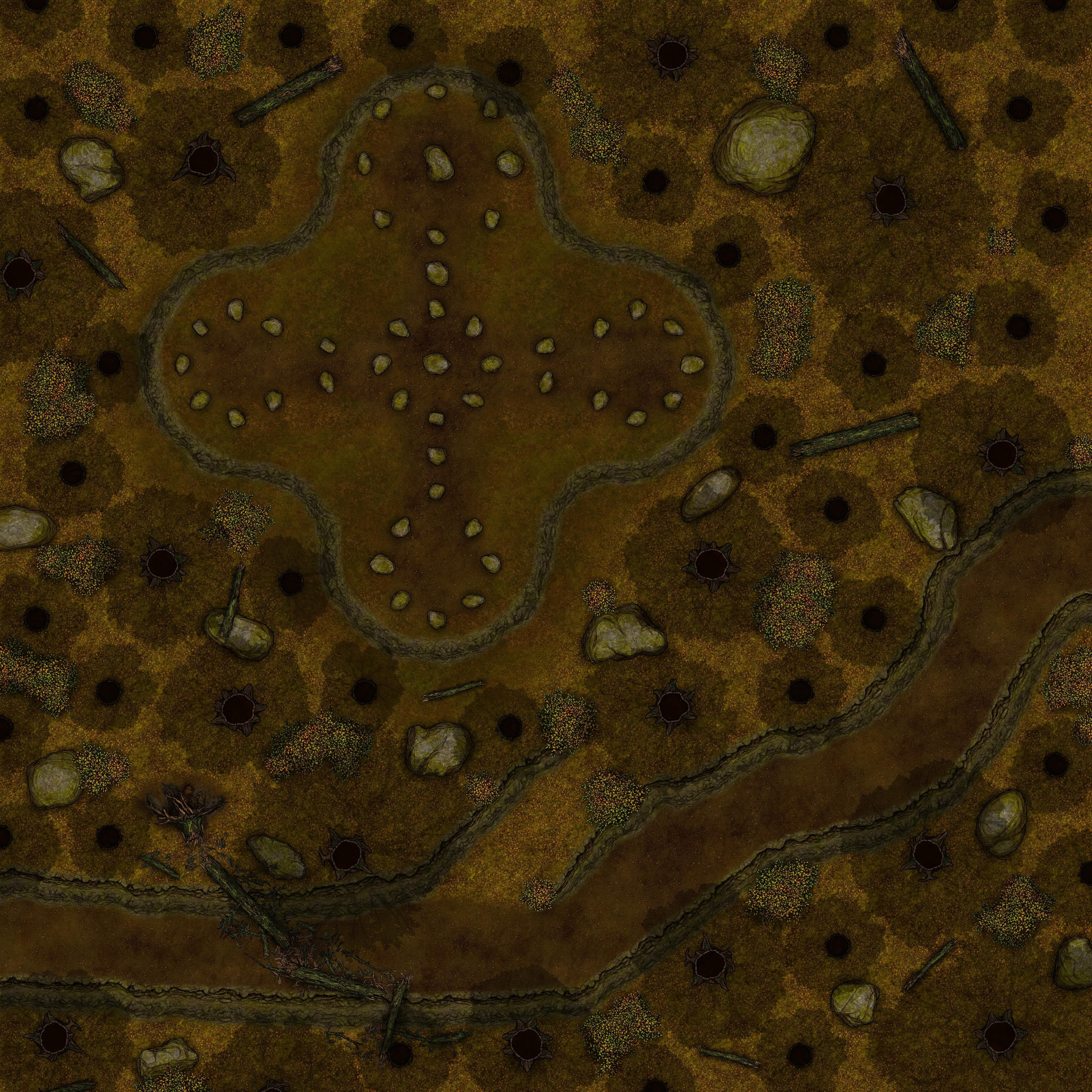 A forest road running along the edge of a hill with an old ritual site at the top. Yet another BG1 inspired map; this one is the Lion's Way Road that leads to Candlekeep. Link [here](https://imgur.com/a/SIgHEZM) if Reddit kills the map quality.