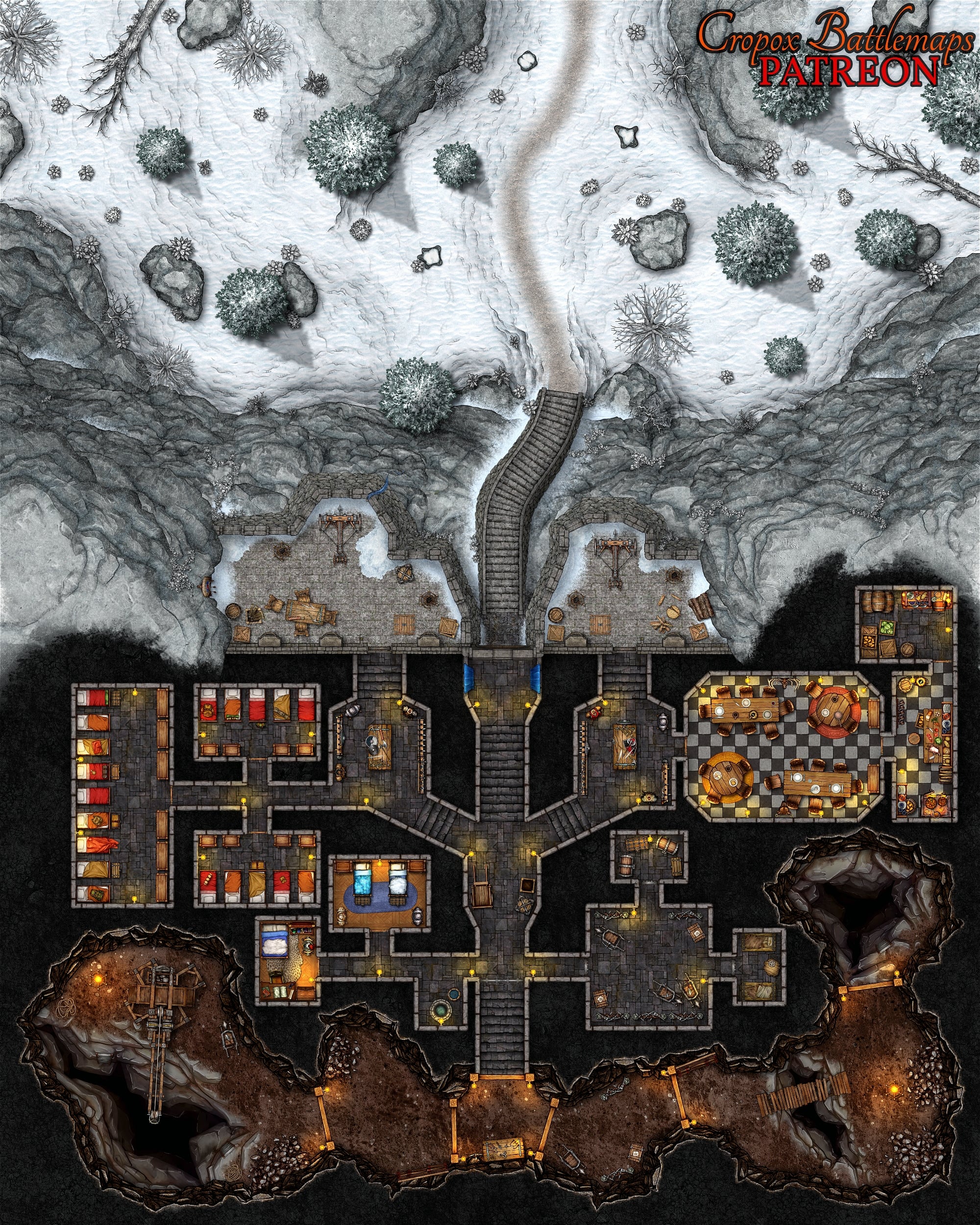 Mountain Mine Fort 40x50 battle map - Winter Version