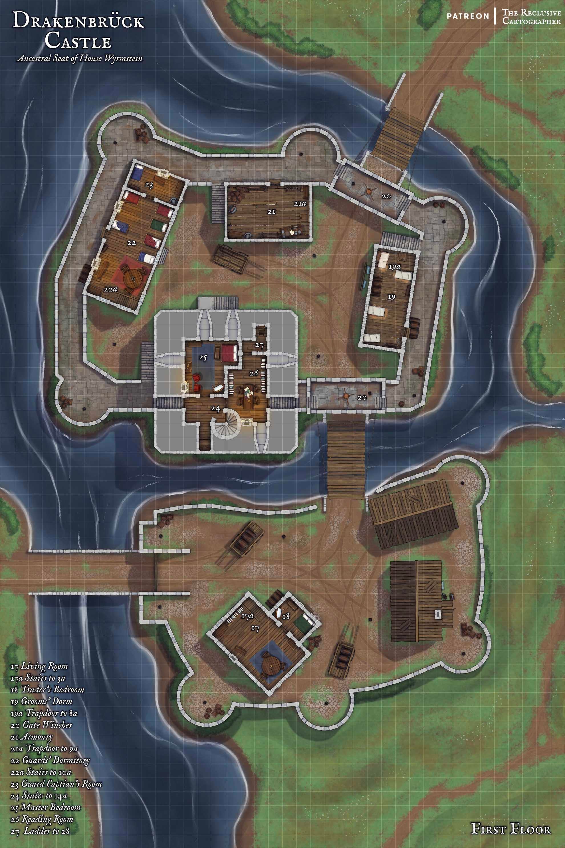 I wanted to share my latest map with you all! Behold, **Drakenbrück Castle!** This is another location in **Duchy of Feranhald,** a fully fleshed out regional im currently working on.