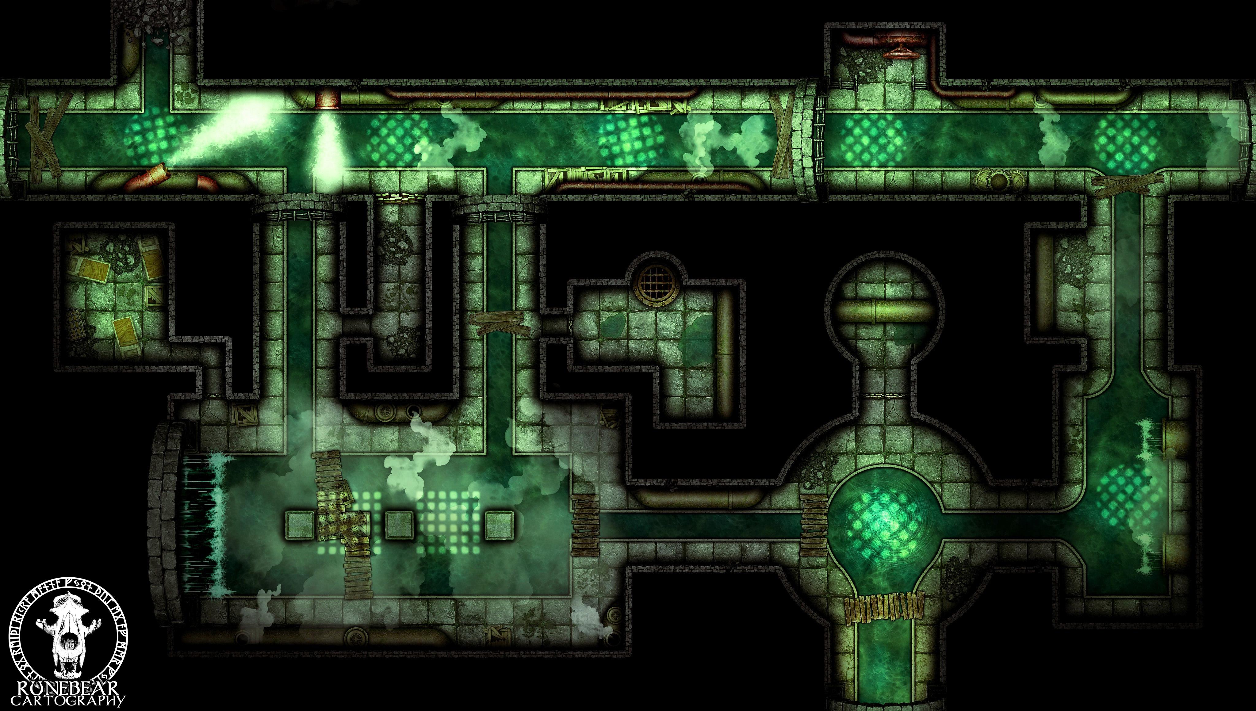 44x25 Steamy Sewers Dungeon Map by Runebear Cartography
