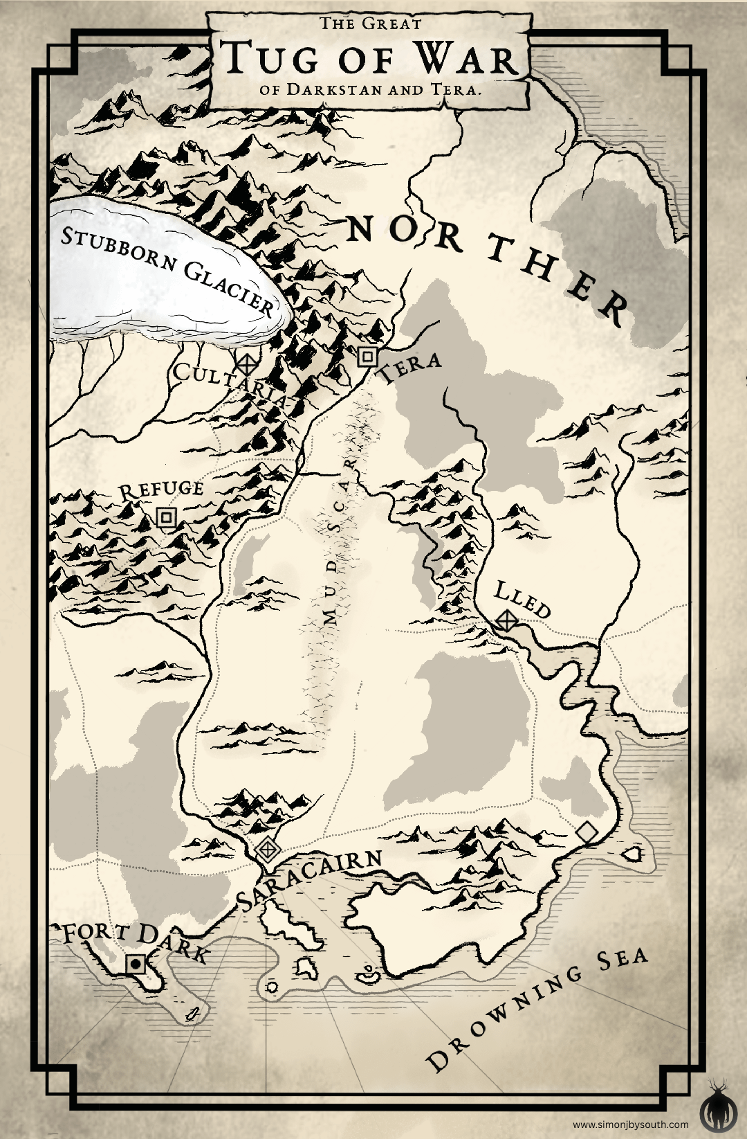 * 500 years ago, the ice cap on the top of the world accelerated its melt, and the land bridge, between what is now called Norther and the main continent, began to sink. What land once existed there is now known as the Drowning Sea. A sea of ghosts and deformed creatures. But the great glacier of Norther remains mysteriously frozen, though cracks have begun to form.