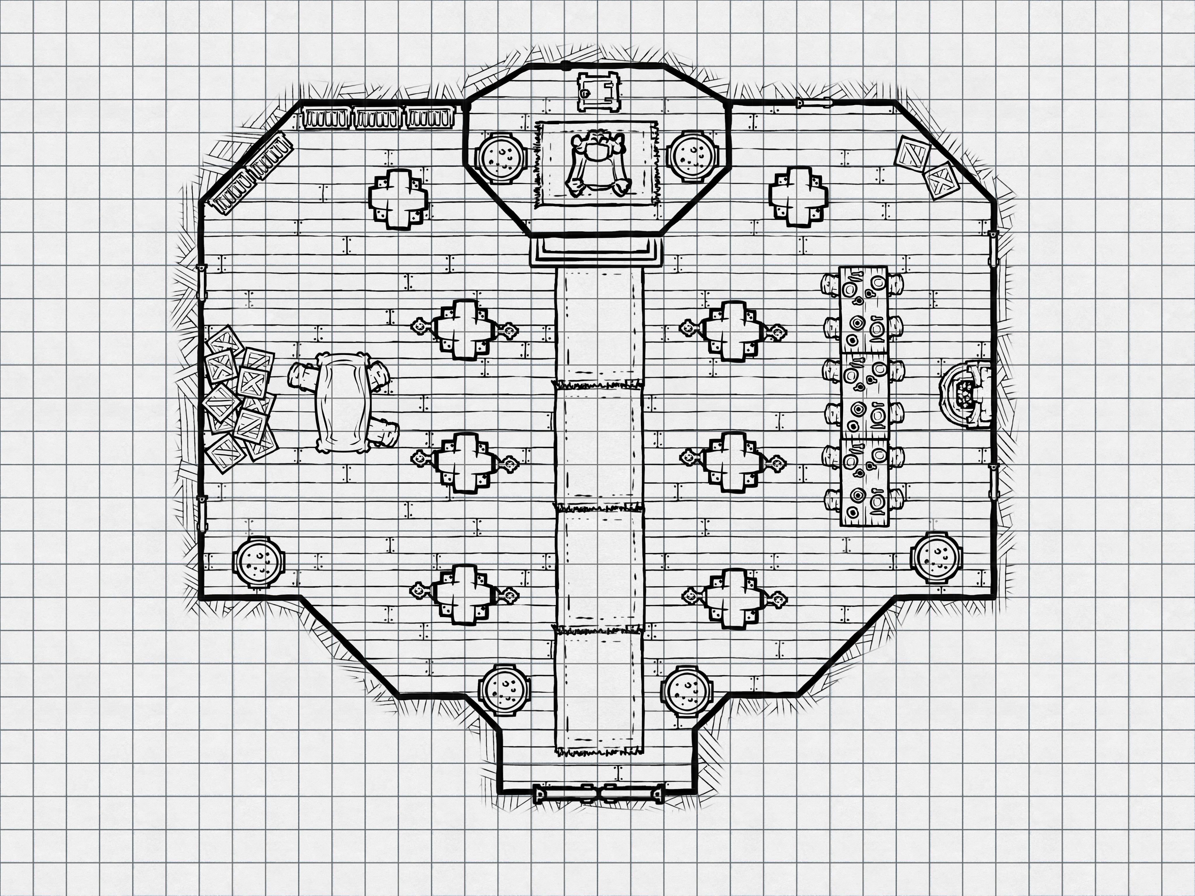 Lastly, a throne room in a wooden keep. Used this for a battle where the king was mind-controlled and turned their back on their kingdom. The players had to kill the person controlling the king, sort of like Gríma Wormtongue, and King Théoden of Rohan in LotR.