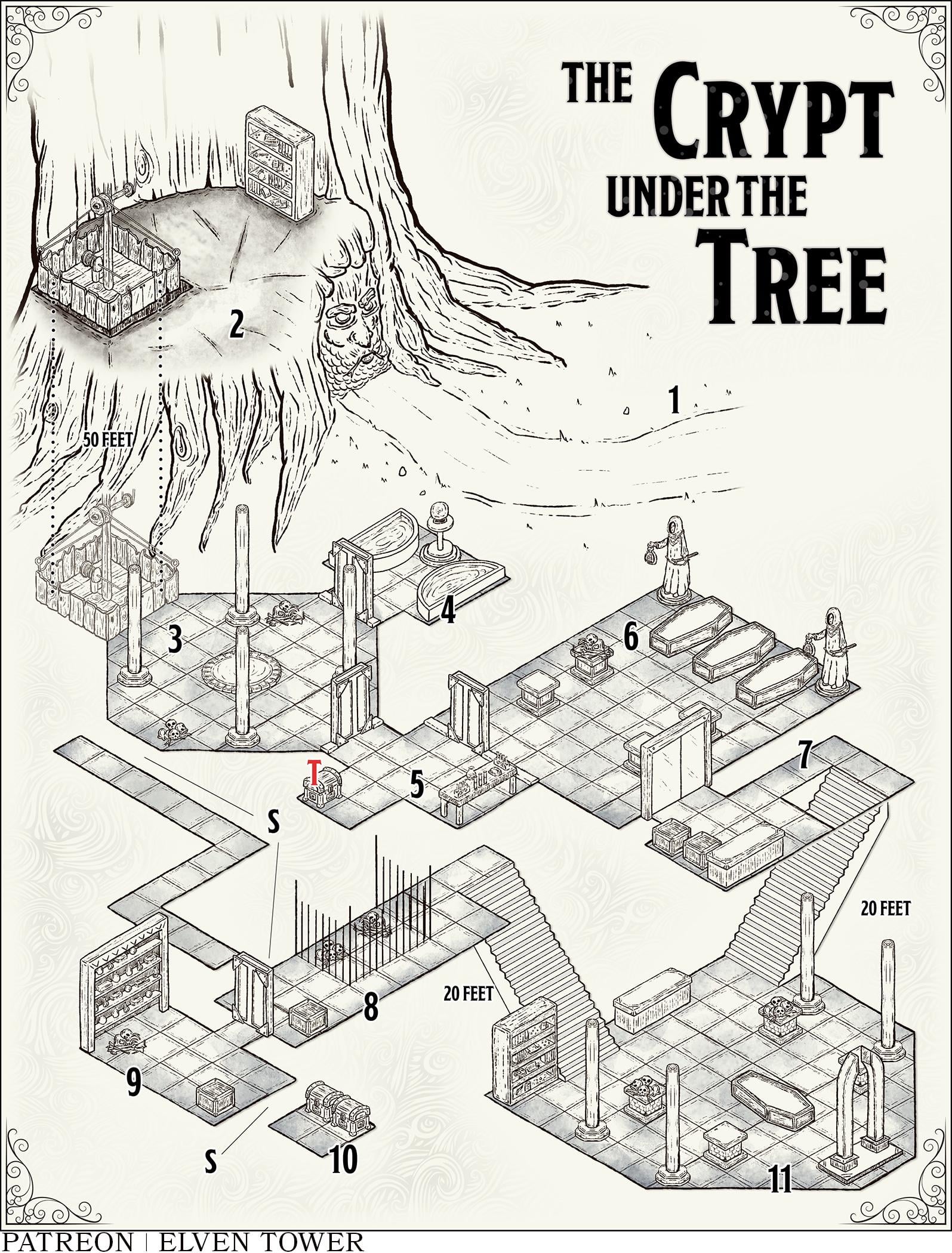 The Crypt under the Tree - Because as Players, we'd all definitely delve a dungeon that has an entrance shaped like a face on a tree. Yes, we would.