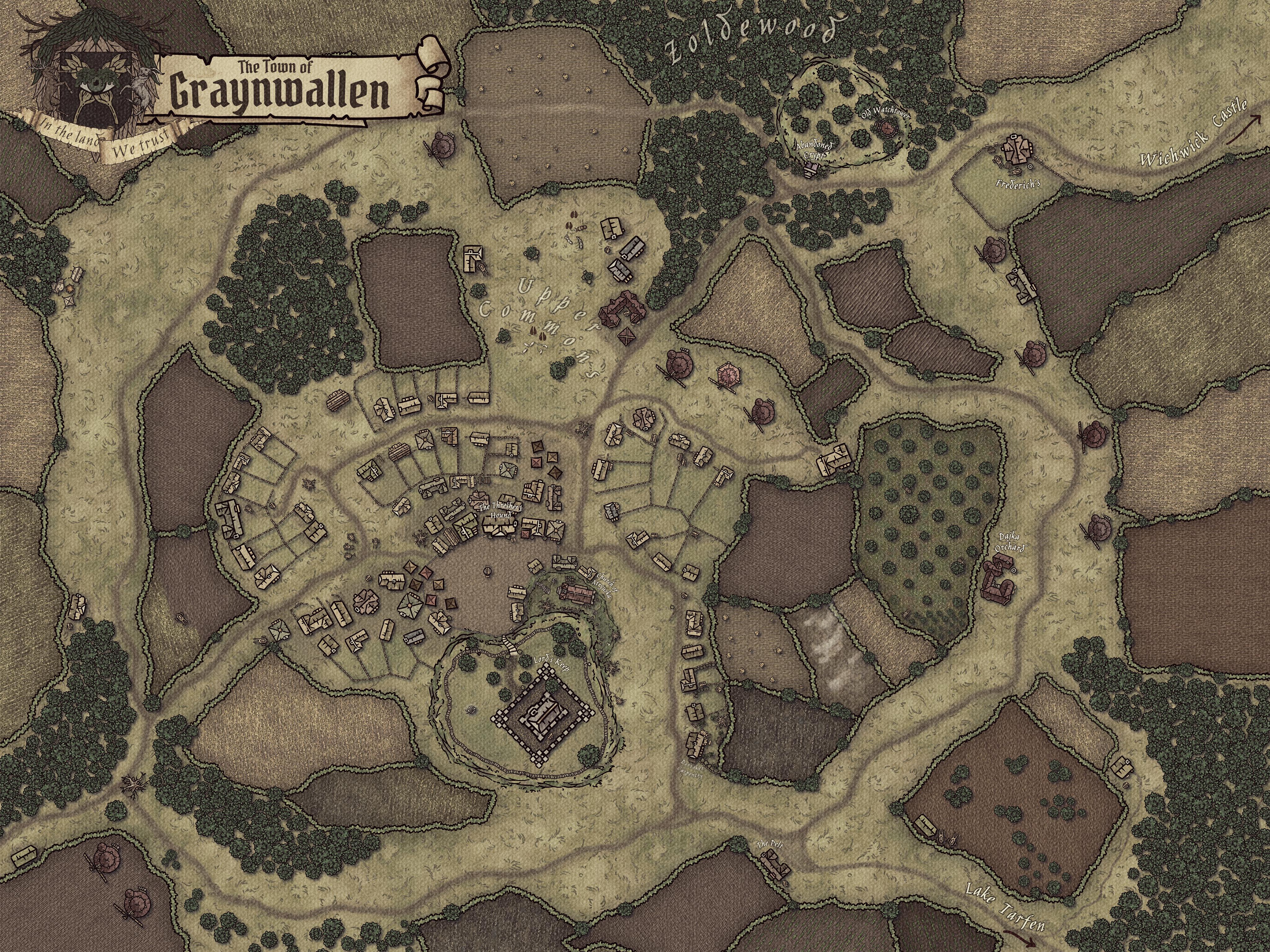 I spent some time learning more about the watercolour city types of maps, and made this farming town map for a friend's D&D campaign. I tried to strike a used paper sort of aesthetic, so the labels are intentionally a bit tricky to read. I'm still fairly new to Inkarnate so critiques are welcome!