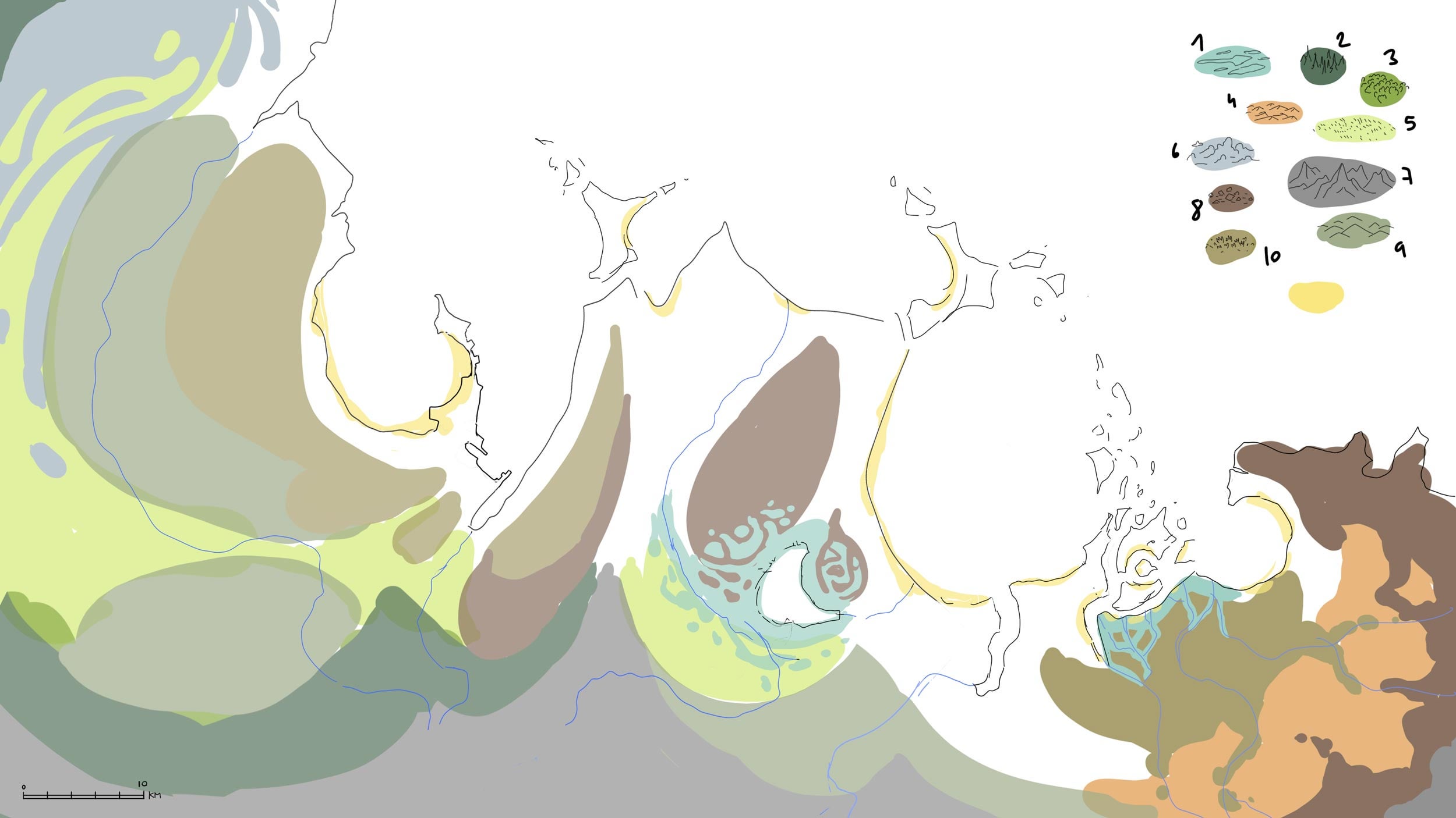 Hey All ! Here is a map I'v been working on this week. I spent quite a while planning the overall topology & biomes, and went really deep into "light storytelling" : making the map speak by itself with evocative names & landmarks. **What do you think ?**