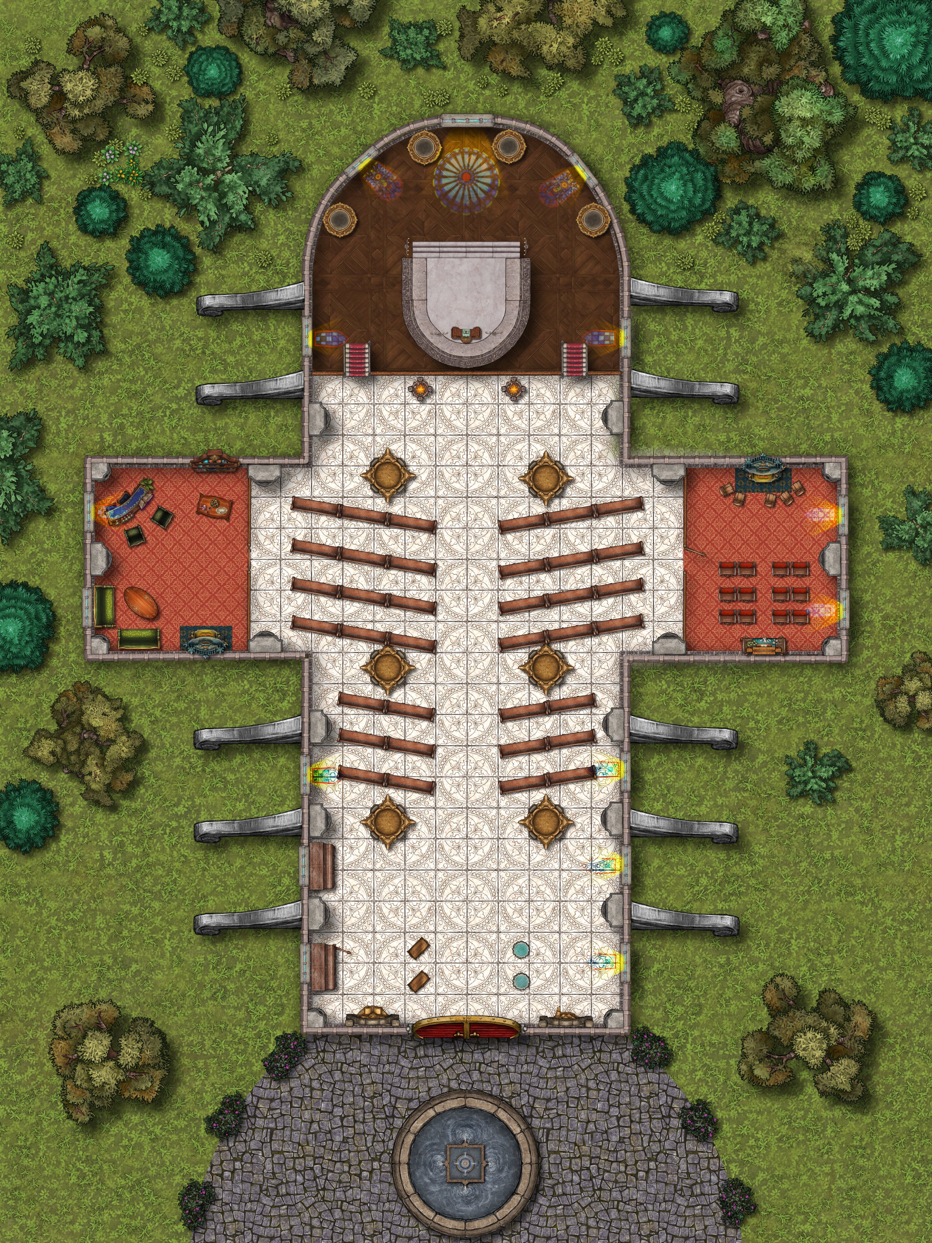 Constructed centuries ago and visited by hundreds of congregants each day, this Grand Cathedral still stands as a jewel in the city's skyline. Originally created for my home game, this map should be suitable for any fantasy or modern campaign! Available both gridded and gridless.