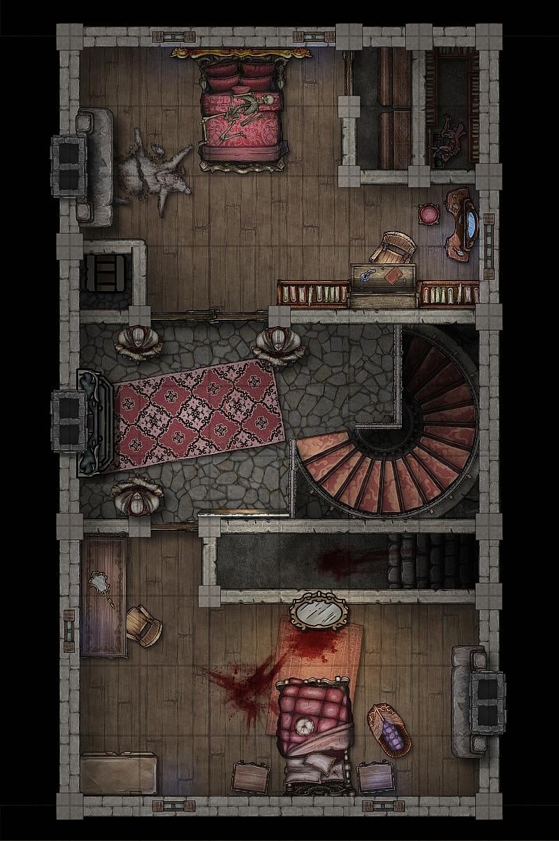I wanted to run a custom version of Death House based on "Death House - Revised and Streamlined" by Redcap Press. I really like the version from Redcap and how it simplifies the adventure (less dungeon crawl, one less floor in the manor) but I don't really like running longer adventures on DungeonScrawl maps (as good as it is, I just don't like the aesthetic) so I decided to make my own based on the revised adventure and the original.