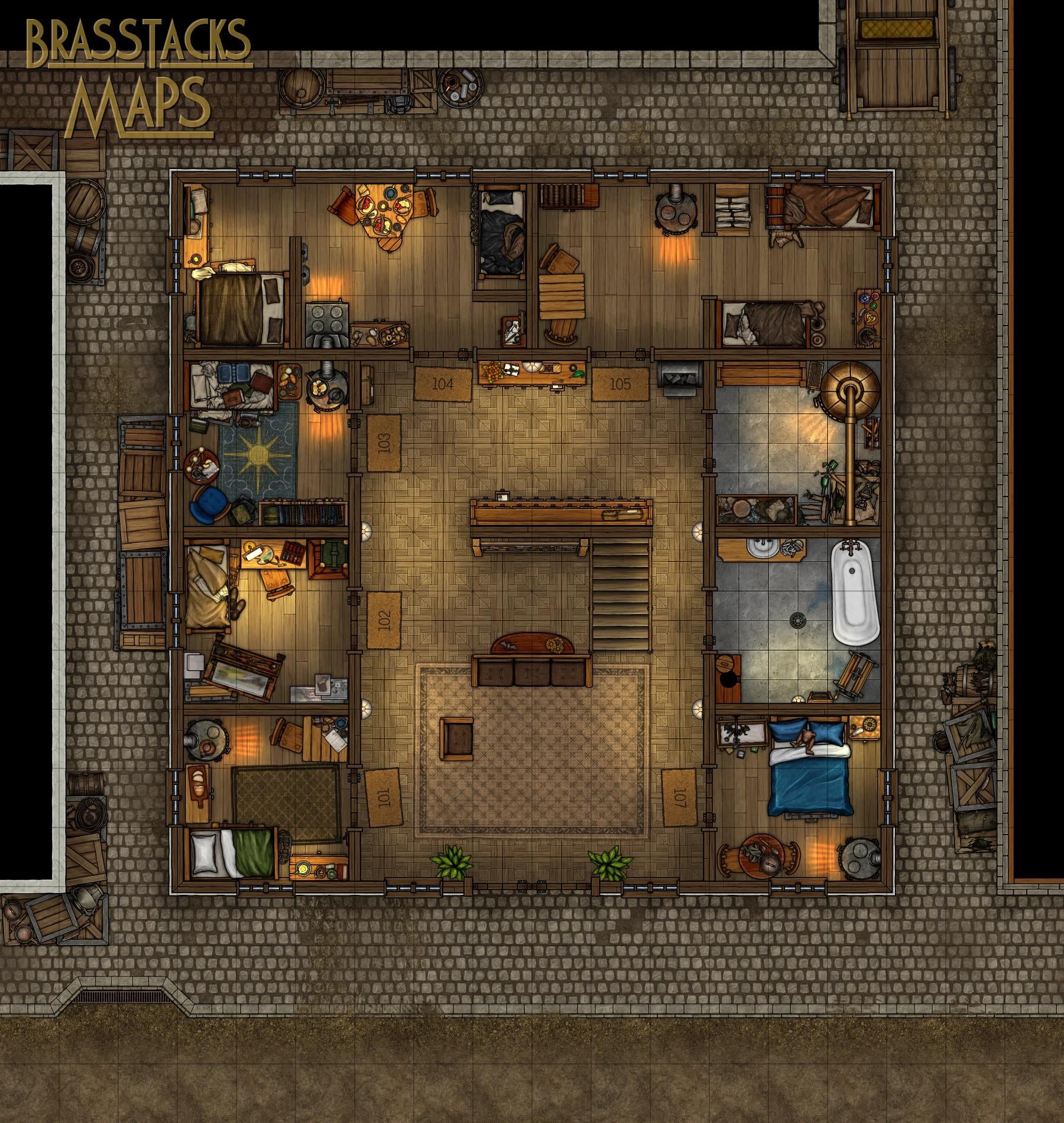 As cities grow more dense, every inch of ground becomes more valuable. Houses in neatly packed rows become a privilege, and more and more of the population become stacked on top of each other. The **Tenement Tower** features twenty-seven individual apartments, each with their own unique design, spread across four floors. Additional amenities include a mail station, a boiler room, bathrooms on every floor, a greengrocer on the second floor, and some businesses run out of apartments such as a bakery and a doctor.
