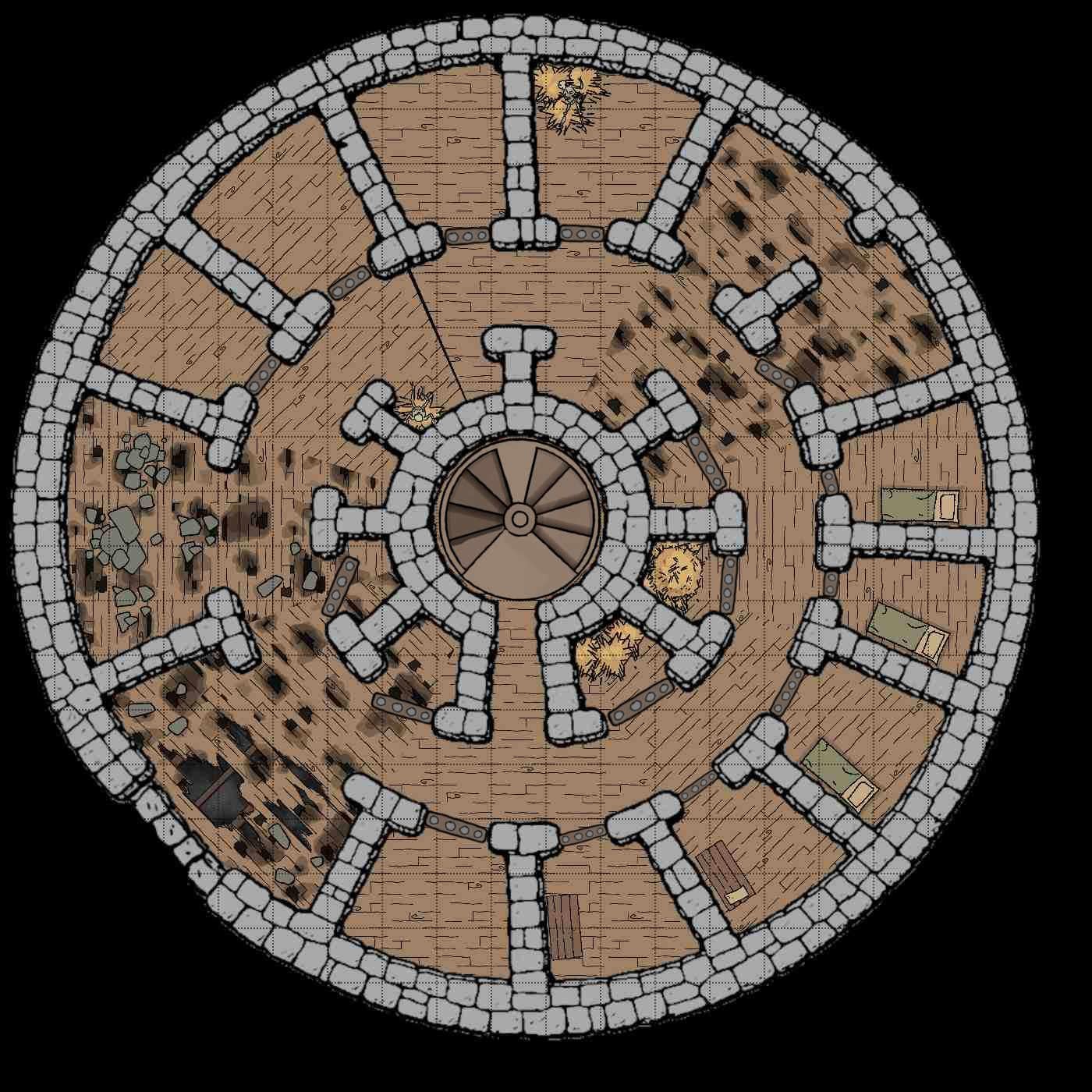 Here are maps I made of the Grimshackle Jail that is found in DDEX1-9 Outlaws of the Iron Route. It is an Adventurer's League Season 1 module. There are no labels because I ran it on Roll20!
