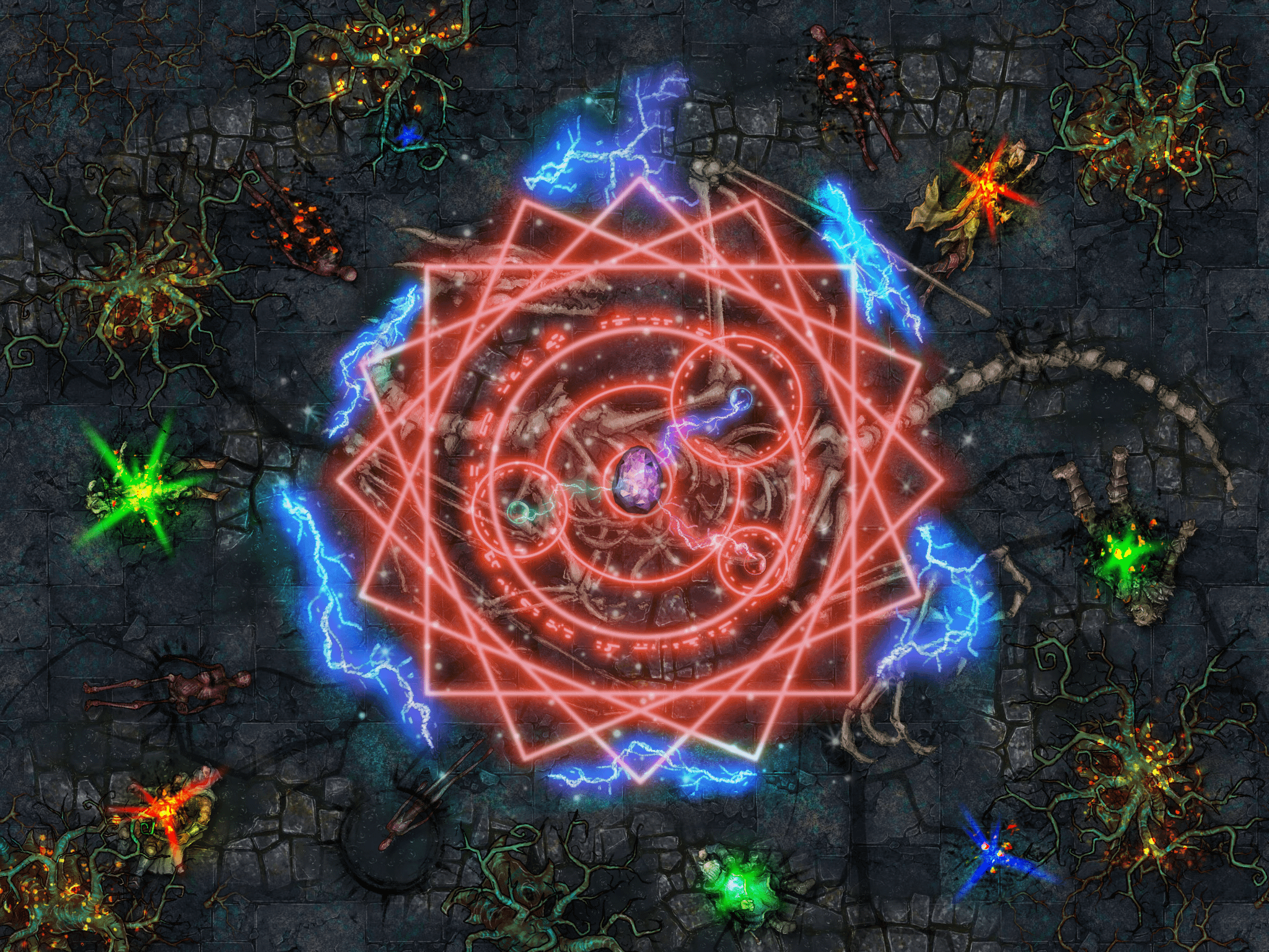 J’ai essayé de créer une battlemap avec une narration visuelle autour d’un rituel qui a mal tourné.