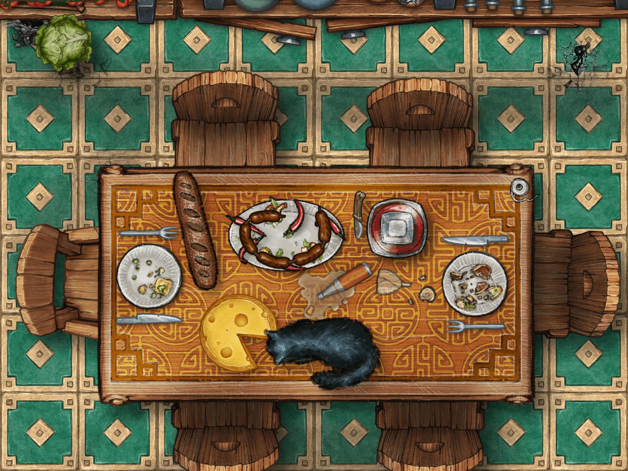 I wanted to create a fun tiny heroes battlemap where the “boss fight” is just… a sleeping cat in the middle of dinner.