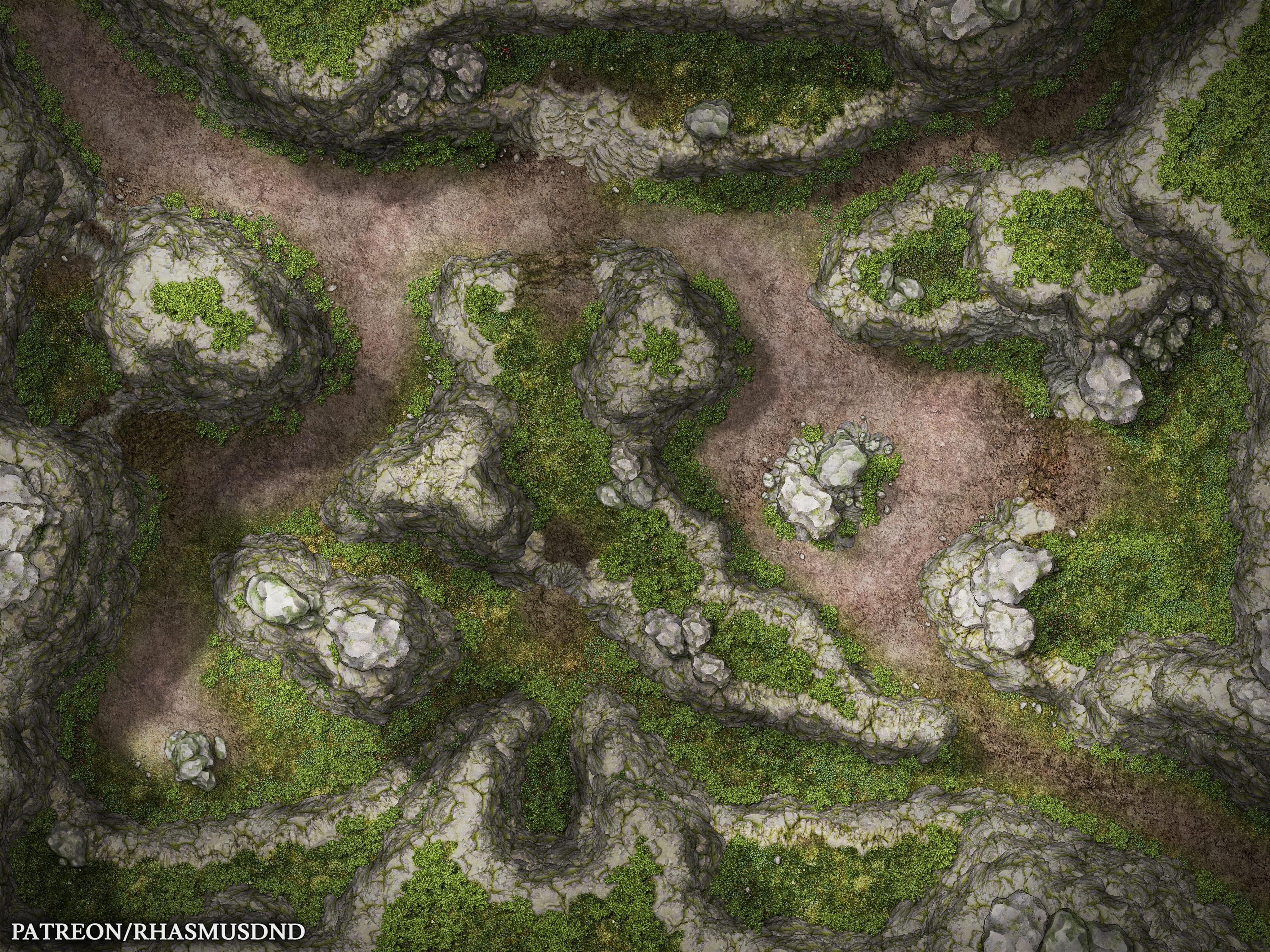 This map is perfect for **ambushes, pursuit scenes, skirmishes between rival factions, scouting missions, or territorial monster encounters**. The layered rock formations reward tactical positioning and punish reckless advances.
